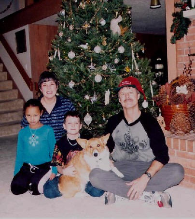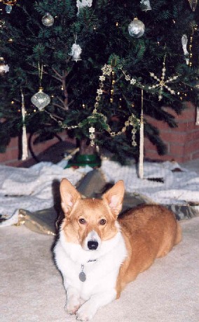 Katie Beth and our Corgi dog Molly on Christmas Day. Katie Beth appears