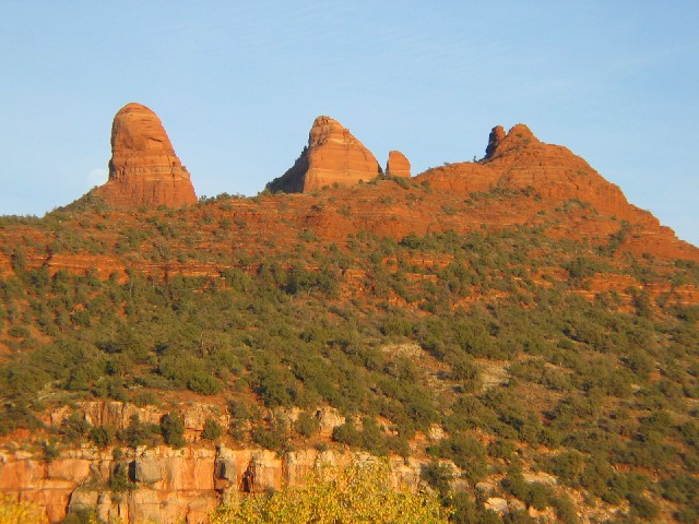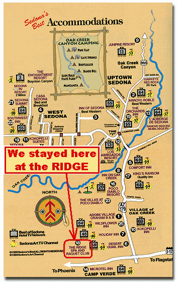 We drove from Texas to Arizona on November 19 and 20, 2004. The total drive time is about 20 hours, of which the first 12 hours or so is just getting through Texas. While enroute, we spent a few hours for a catnap at the tourist information booth on the New Mexico and Arizona border. We finally arrived in the Sedona area around noon on Sunday.