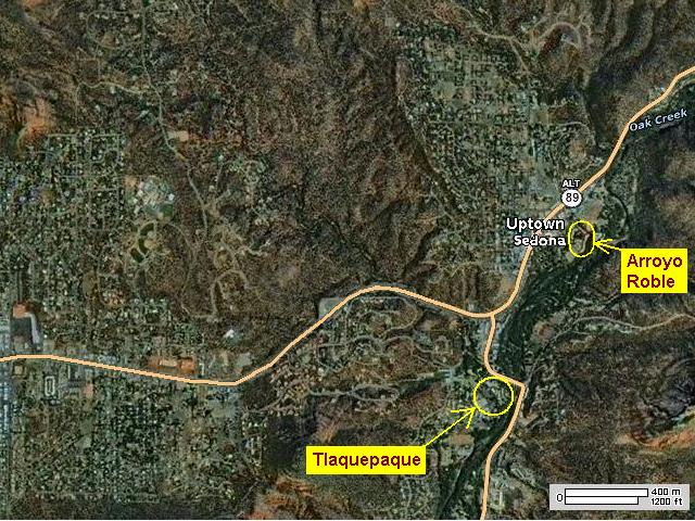 Sedona behind the Sinagua Plaza shopping area. Oak Creek runs along the entire length of the