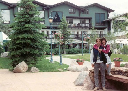 Pam (Tom and Gregs sister) carries Dana in her backpack.